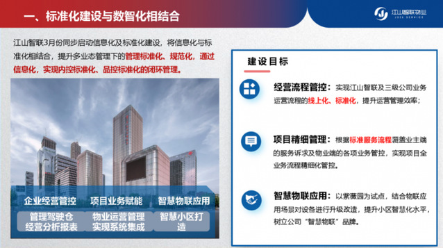 會上,設計成本部匯報了集團各公司標準化工作整體推進情況,奧體公司、新城公司、園林公司、青奧城公司、江山智聯物業(yè)公司、濱江公園公司分別展示了最新的標準化工作成果。各公司標準化的工作緊緊圍繞其主營業(yè)務展開,貼合自身需求,特色鮮明。